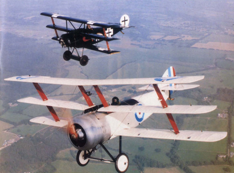 Самолёты на фотографии: Fokker Dr.I - Германия - 1917Sopwith Triplane - Великобритания - 1916