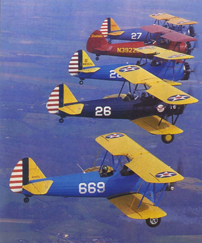 Регистрационный номер: N3922B Recalling one of the most colourful periods in American aviation history, the Stearman Kaydet became the first standard trainer for the US Army Air Corps, its excellent handling qualities ably displayed by the Stearman Display Team.