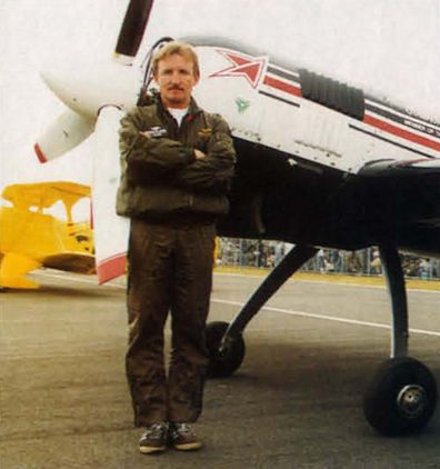 Firebird Aerobatics' Extra 300L, flown by Brian Lecomber, provides gut-wrenching displays of virtuoso aerobatics.Самолёты на фотографии: Extra EA300 / EA200 - Германия - 1987