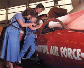 The Crunchies prepare for their wing-walking act against a backdrop of fast Jets.