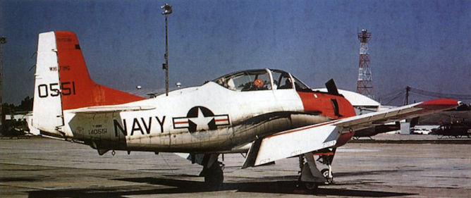 This T-28C, BuNo 140551, was serving at Naval Air Station Whiting when it was photographed in 1973. The generous flap area is evident.