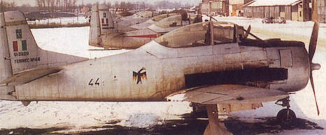 These Armee de I’Air Fennecs lined up in the snow still carry their original USAF identities as well as their French production numbers. The nearest, “No 44”, began life as T-28A 51-3529.