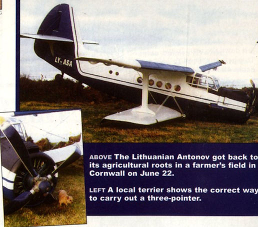 Регистрационный номер: LY-ASA The Lithuanian Antonov got back to its agricultural roots in a farmer’s field in Cornwall on June 22, 1999.