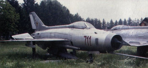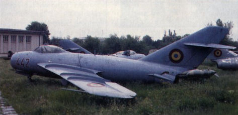A later MiG type on show at the Romanian Aviation Museum is this -21, displaying its all-flying tailplane and underfuselage pod.
