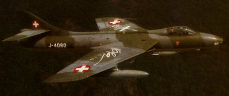 Регистрационный номер: J-4080 Flown on both days of the Locarno air show on June 19-20, 1999 was Hawker Hunter F.58 J-4080, which is based an Ambri with the Groupe Amici dell’ Hunter. Swissair captain Roberto Battaglioni was at the controls of the fighter, which has flown only 15hr since taking up the civil registration HB-RVT. It was delivered to the Swiss Air Force in November 1959, and finally retired in 1994. The organisation will also operate a two-seat Hunter in the year 2000.