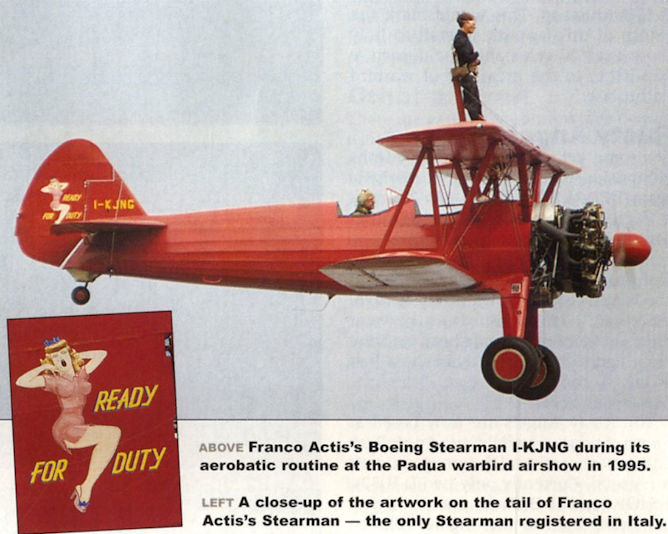Регистрационный номер: I-KJNG Franco Actis’s Boeing Stearman I-KJNG during its aerobatic routine at the Padua warbird airshow in 1995.