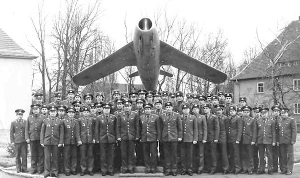 Личный состав у памятника истребителю МиГ-17 (фото 1988 года)