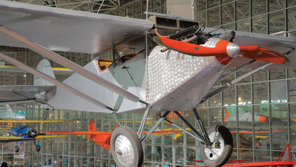 Первый почтовый самолет Ryan M-1, построенный и изготовленный для обслуживания частных авиакомпаний в 1926 году по оригинальному проекту Тубала Клода Райана. В передней открытой кабине было место для двух пассажиров (или для одного сопровождающего и 300 фунтов почты, или только 600 фунтов почты), а в задней - место для пилота. В настоящее время восстановленный до летного состояния между 1980 и 1984 годами раритетный Ryan M-1 (первый серийный моноплан, строившийся в Соединенных Штатах) висит под потолком в Музее полета в Сиэтле