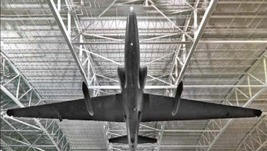 Один из ранних разведчиков Lockheed U-2C (Ser. 56-6701), который «висит в небе» под потолком аэропорта города Эшленд в округе Сондерс, шт. Небраска. Маленькая блестящая стеклянная капля и есть перископ нижнего вида