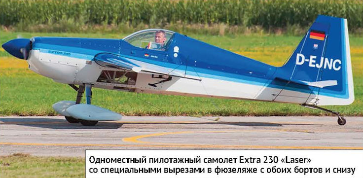 Регистрационный номер: D-EJNC Одноместный пилотажный самолет Extra 230 «Laser» со специальными вырезами в фюзеляже с обоих бортов и снизу