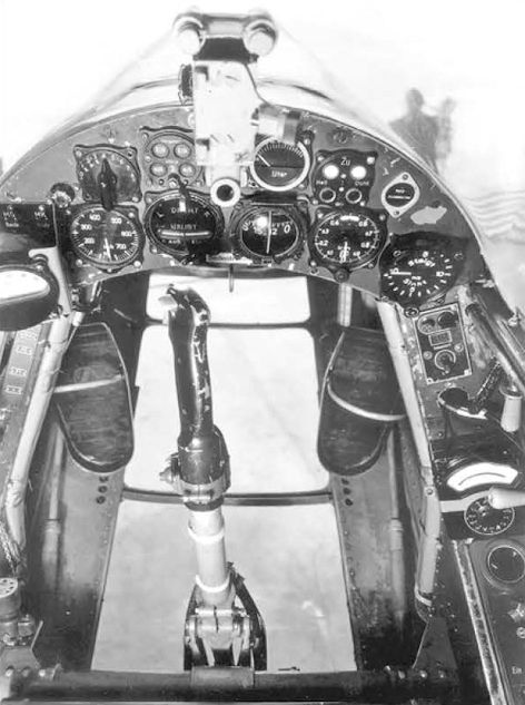 Вид изнутри кабины пилота истребителя Fw 187A-0. Отличный обзор вниз из кабины пилота заслоняет только ручка управления