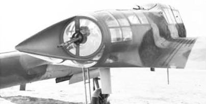 При отражении атаки истребителей противника стрелок-радиооператор разведчика BV 141B, поворачивая верхнюю часть конуса вдоль ее оси, мог вести ответный огонь из спаренной установки двух 7,92-мм авиационных пулеметов MG 15. Как и у его конкурента (Fw 189), задняя стрелковая установка также вращалась вокруг своей оси на 360°. На этом снимке изображен хвостовой конус более поздней модификации с частично прозрачным остеклением