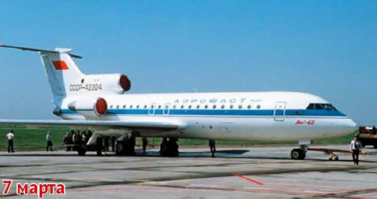 Регистрационный номер: СССР-42304 Самолёты на фотографии: Яковлев Як-42 - Россия - 1975