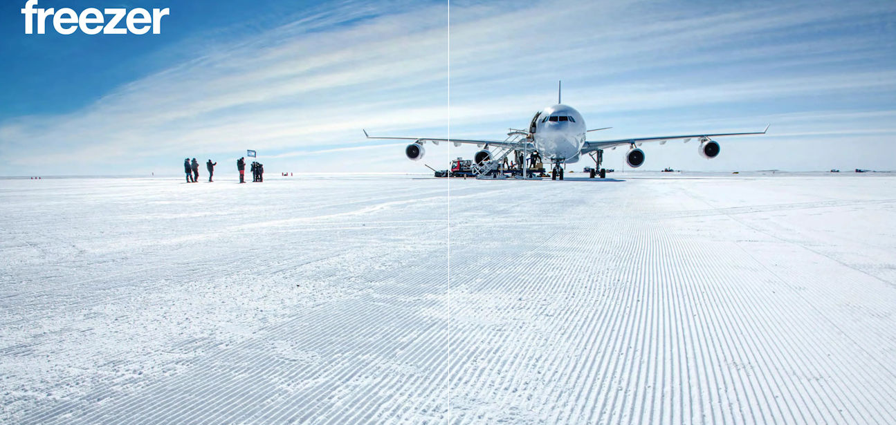 A blue glacial ice runway is hard and can support heavy aircraft such the A340. Special equipment carves grooves along the runway; after cleaning and carving, the surfaces provide an adequate braking coefficient. The runway is 3,000m long, so landing and stopping an A340 is not a problem