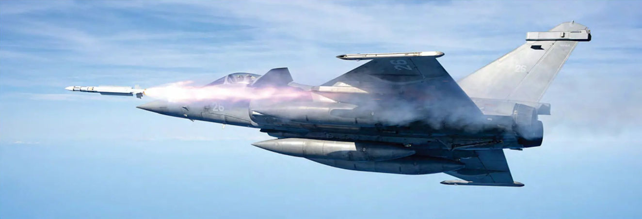 An Aeronavale Dassault Rafale M lets loose an MBDA MICA RF during early testing. Flexible and versatile, the MICA equips Rafale, Mirage 2000 and even some Mirage F1 fighters