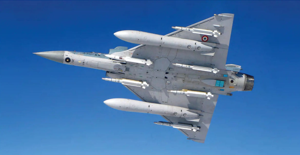The Mirage 2000C can carry up to six MICAs. This aircraft carries a single MICA RF and five MICA IR variants - an unusual loadout since the weapons are often carried in mixed pairs