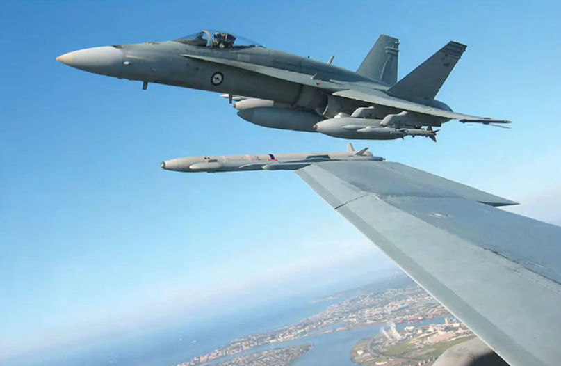 An MBDA ASRAAM can be seen on the wingtip of the RAAF Hornet in the foreground while his wingman carries twin AMRAAMs underwing. ASRAAM has not been integrated on the newer Super Hornet for largely budgetary reasons