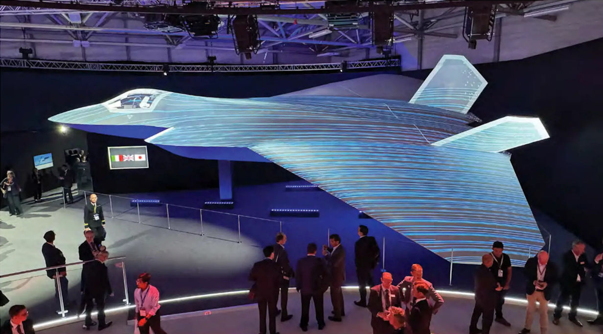 The BAE Systems Hall at Farnborough was dominated by a life-sized 1:1 scale model of Tempest/GCAP, onto which various logos and graphics were projected. Over 1,000 suppliers are supporting the programme across three nations
