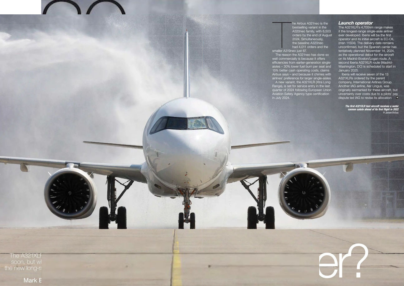 Iberia is scheduled to introduce the A321XLR in November 2024 on its Madrid-Boston/Logan route