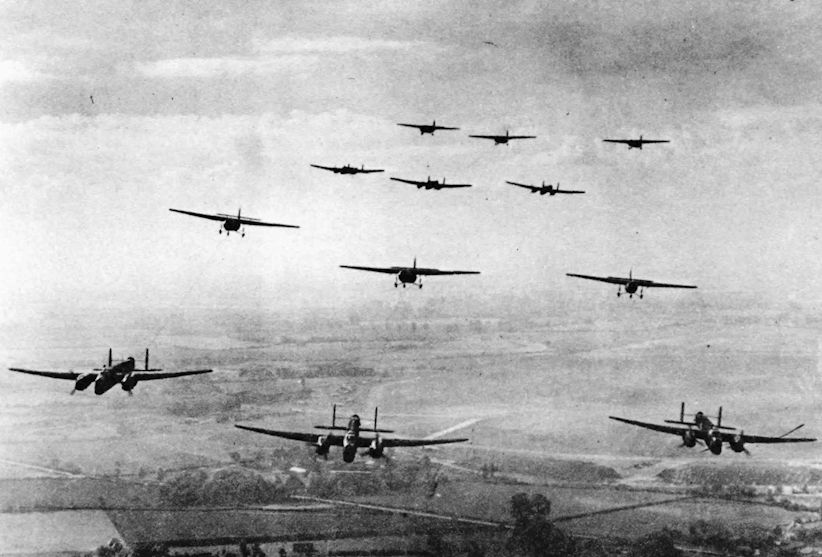 A formation of Harvard Is from No.2 Flying Training School flying from Brize Norton in 1940Самолёты на фотографии: North American T-6 Texan / AT-6 Harvard - США - 1935