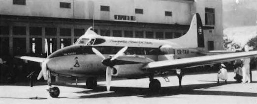 Регистрационный номер: CR-TAH Dove CR-TAH "Oe-Cusse" at Dili Airport, Timor on 20.8.68. A cartoon-like figure is painted on the nose.