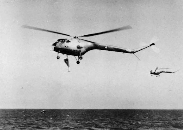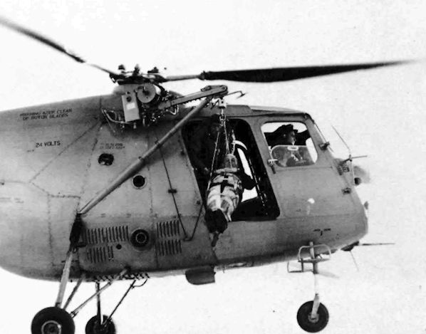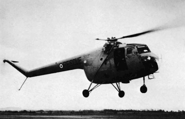 A Chivenor-based Sycamore demonstrates its hoist, 15.4.58