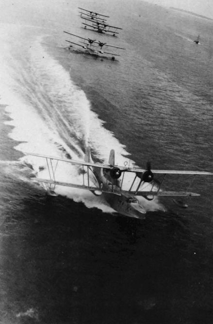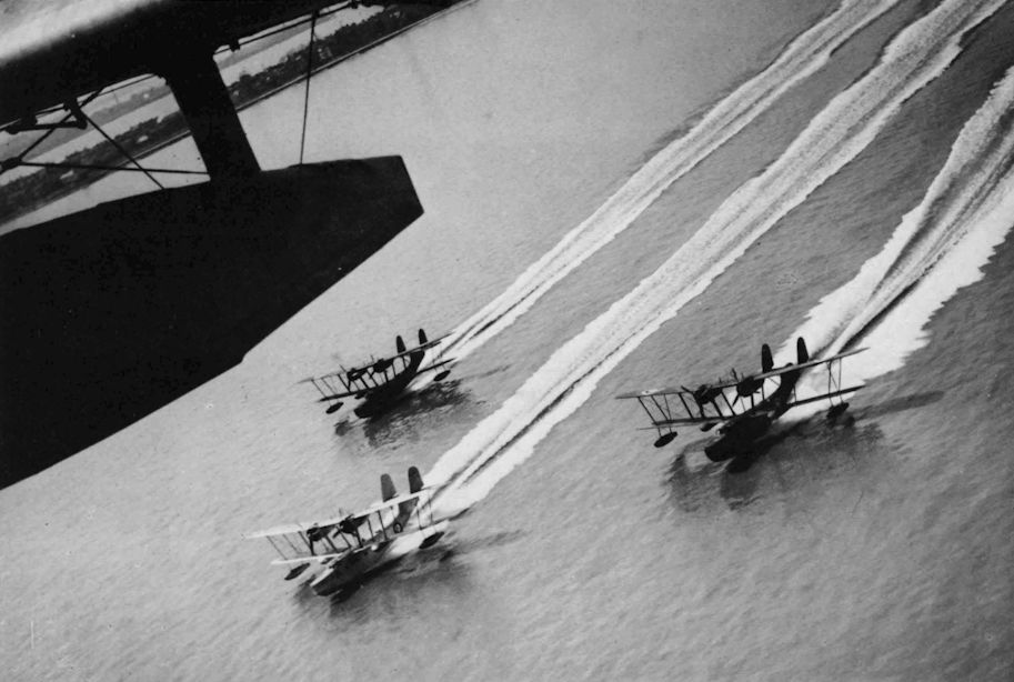 Three Stranraers of No.209 Squadron in a formation take-off to seaward of Harwich May 1939