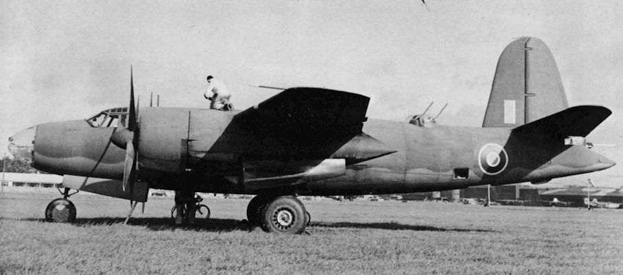 A Marauder on its nose. The scenary is more temperate that one normally sees in photos of RAF Marauders but again the serial is illegible. It has an A1 roundel on the fuselage and appears to be an early example of the type while under test at A&AEE or some similar establishment.