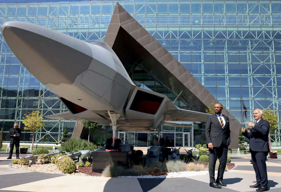 The then British Foreign Secretary James Cleverly visited the Turkish Aerospace Industries headquarters in Ankara, Turkey, on September 14, 2023, where he was photographed with the full-scale TF-X mock-up - an aircraft produced with extensive engineering assistance from BAE Systems