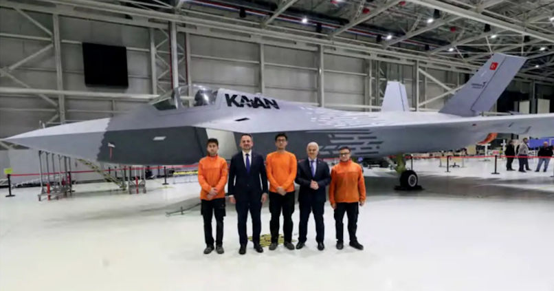Senior members of the MMU team with the Kaan GTU-01 after the repaint that followed the aircraft's first flight on February 20, 2024. Fourth from the left is Professor Dr Temel Kotil, Chairman and CEO of Turkish Aerospace Industries from 2016-2024