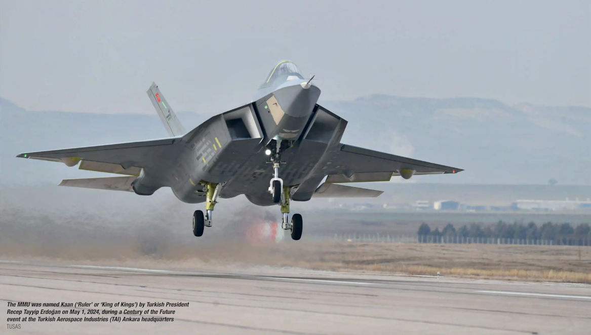 The MMU was named Kaan ('Ruler' or 'King of Kings') by Turkish President Recep Tayyip Erdogan on May 1, 2024, during a Century of the Future event at the Turkish Aerospace Industries (TAI) Ankara headquartersСамолёты на фотографии: TAI TF Kaan - Турция - 2024