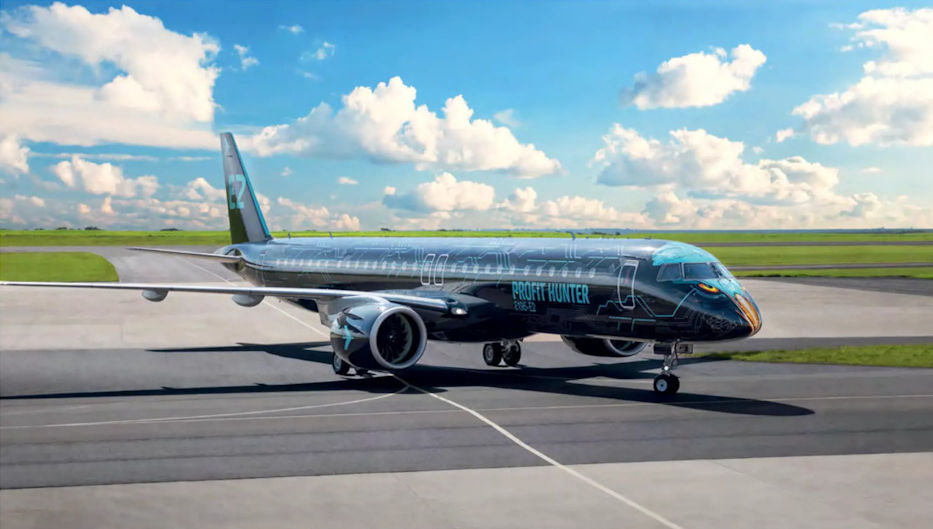 Регистрационный номер: PR-ZIQ In partnership with Embraer, MAAS Aviation created the striking Profit Hunter paint scheme for the E195-E2, which the aircraft wore wore as part of a sales demonstration tour by the OEM