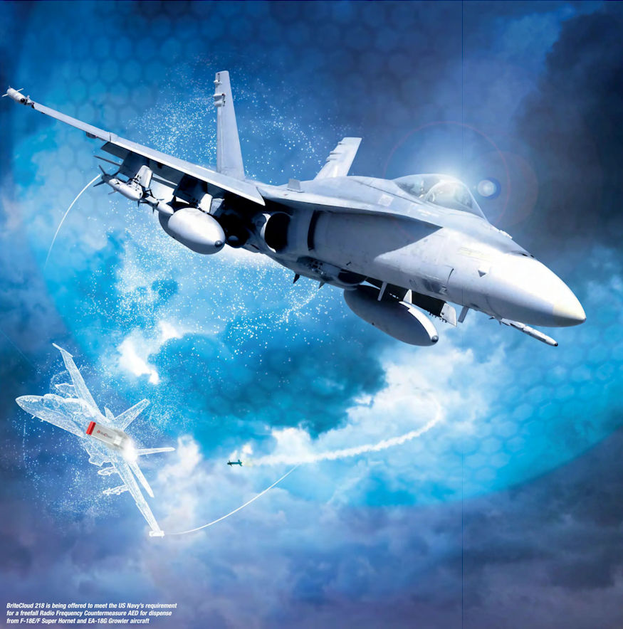 BriteCloud 218 is being offered to meet the US Navy's requirement for a freefall Radio Frequency Countermeasure AED for dispense from F-18E/F Super Hornet and EA-18G Growler aircraft