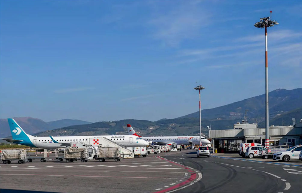 Florence Airport, with E-Jets on the ramp. The airport has one of the most challenging runway approaches for commercial aircraft