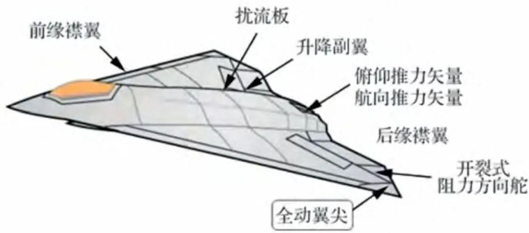 This schematic diagram shows new aerodynamic control methods for tailless configurations. It will be interesting to see how many are incorporated into the J-36