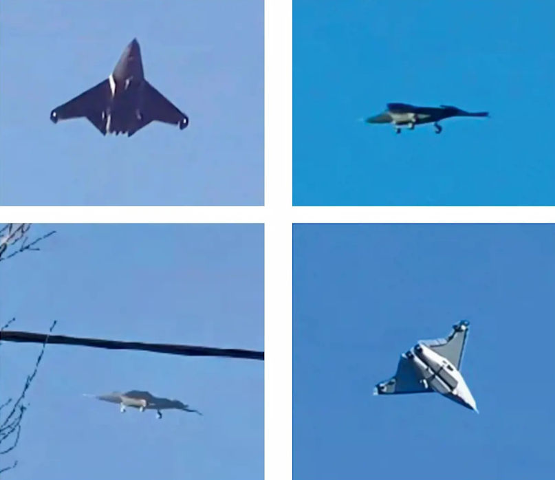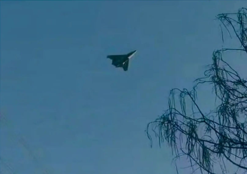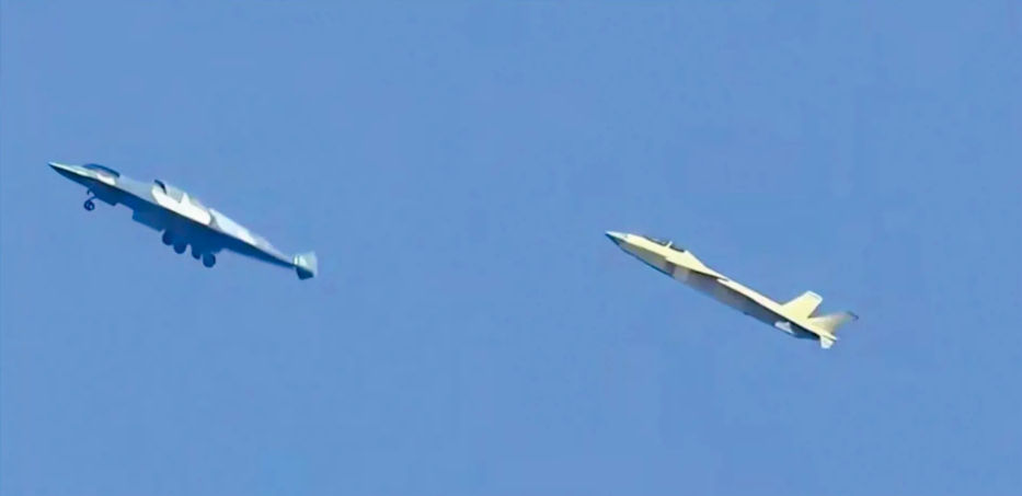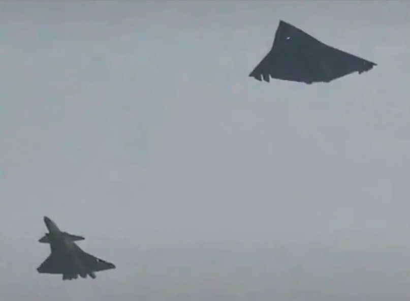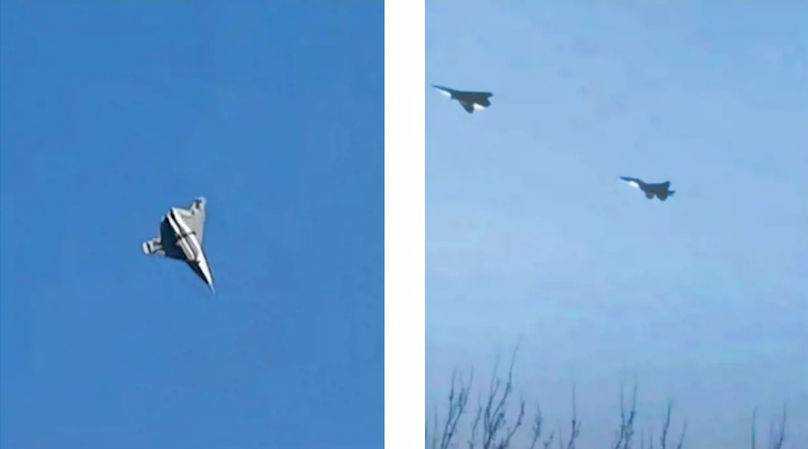 Пролет необычного летательного аппарата в сопровождении двухместного истребителя J-20