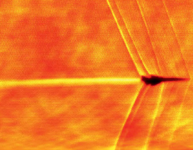 Schlieren images document the changing air density around the aircraft at supersonic speeds