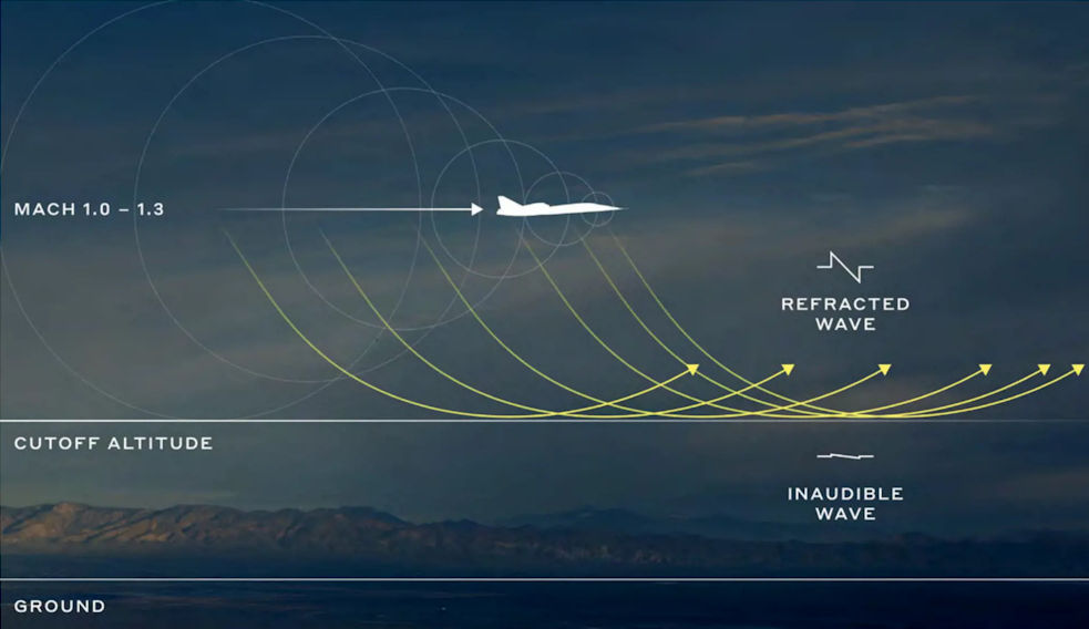 Boom promises 'Boomless Cruise'. This is a Pennsylvania State University Acoustical Model of Mach cut-off flight