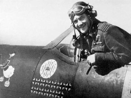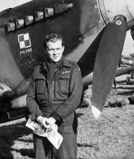 Командир 133-го истребительного авиакрыла RAF подполковник Станислав Скальский в кабине своего «Мустанга» Mk.III, 1944 г. На самолёте нанесена 21 отметка о ранее сбитых немецких самолётах в виде «железных крестов» (четыре креста без белой окантовки, судя по всему, обозначают групповые победы), на Скальском тот же «персонально подписанный» шлемофон.