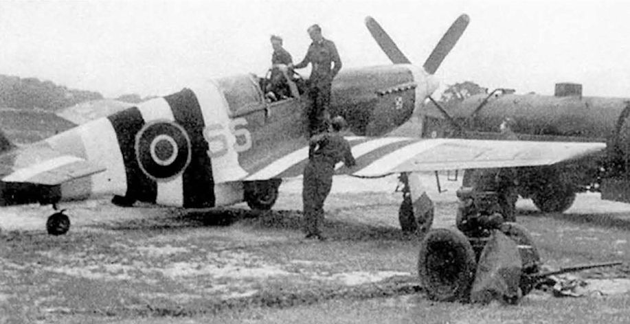 Польский офицер штаба 131-го истребительного авиакрыла RAF Александр Габшевич на фоне «Спитфайра» Mk.IX. 1944-1945 гг.