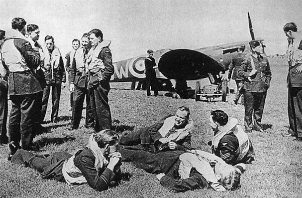 Spitfire pilots of 610 Sqn RAuxAF at dispersal in the summer of 1940.