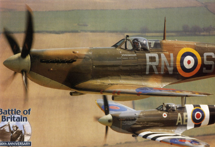 Регистрационный номер: AB910 [2], P7350 [2] The BBMF’s two oldest Spitfires, Mk IIA P7350 (nearest) and Mk VB AB910, in 1996.