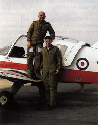 Mal Reeves with his son Christopher, standing alongside a Bulldog of 11 AEF at RAF Leeming. Christopher hopes to become an RAF pilot.