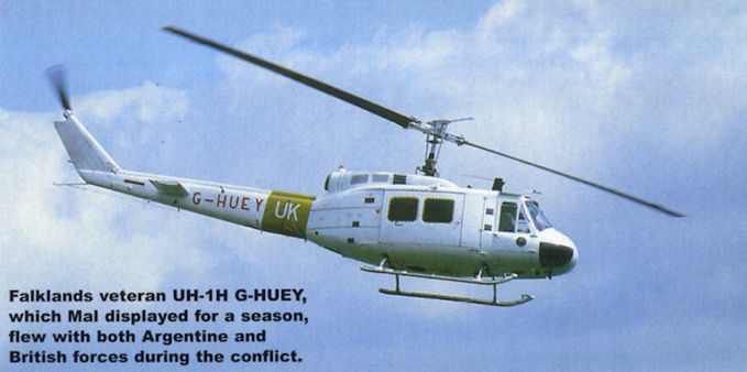 Регистрационный номер: G-HUEY Falklands veteran UH-1H G-HUEY, which Mal displayed for a season, flew with both Argentine and British forces during the conflict.