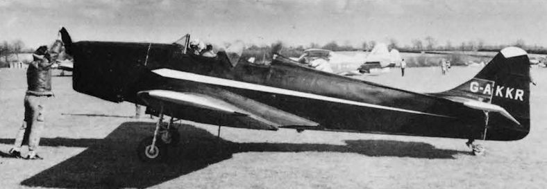 Регистрационный номер: G-AKKR, T9707 Formerly with the Speedbird Flying Club, the black and yellow G-AKKR gets a swing at Sywell on 14.4.62.
