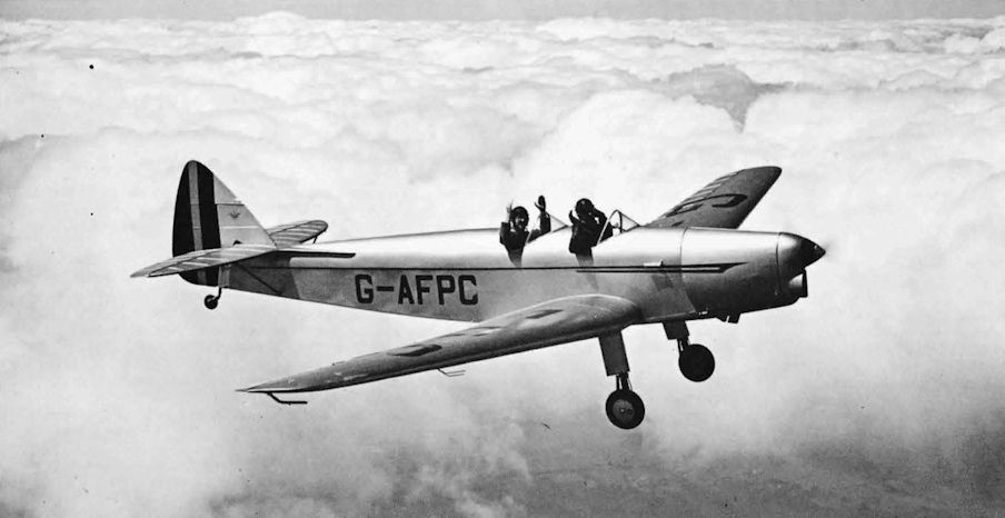 No apologies for using this well-known view of the RAF Flying Club's G-AFPC being flown with four hands off!Самолёты на фотографии: De Havilland Moth Minor / D.H.94 - Великобритания - 1937