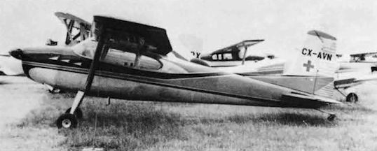 Регистрационный номер: CX-AVN Replacing the short-lived Cessna 180B, CX-AVN(2) is a model 180C and is used as an ambulance aircraft as the red cross on the tail confirms.
