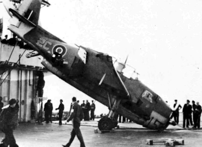 Avenger 2P goes over the edge on landing on off Arran, 26 June 1944