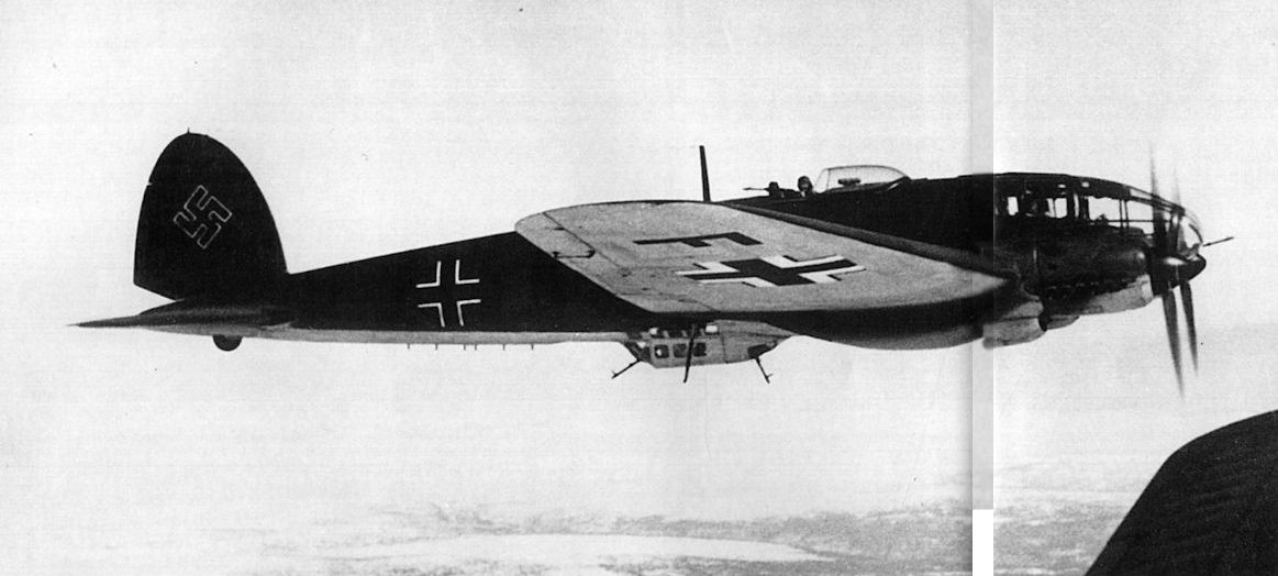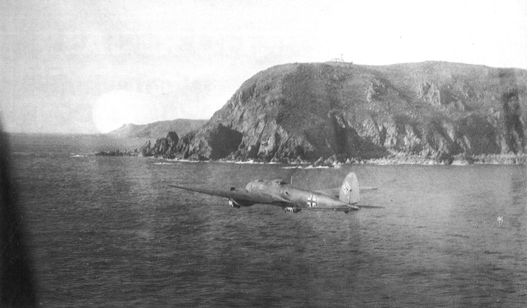 Seen low off the coast of Jersey in June 1940, this is He 111 G1+LS of 8/KG55, one of the raiders of July 29, 1940.