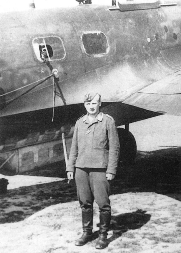 Unteroffizier Kurt Boker, radio operator on G1+CS, poses by the aircraft during the afternoon of July 29, 1940, just hours before his final operational flight.